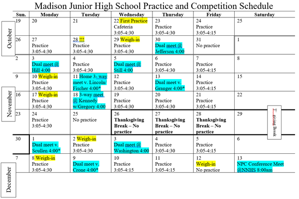 End of season: NPC Tournament @ NNHS (Saturday, December 13th)